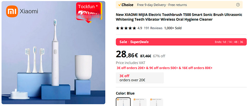 Новая модель электрической зубной щетки XIAOMI MIJIA Electric Toothbrush T500. Несколько режимов работы, комфортное использование, 6 встроенных датчиков для анализа процесса, настройки и статистика через приложение, высокочастотный вибрационный магнитно-левитационный акустический волновой мотор имеет частоты вибрации 31000 раз/мин, что обеспечивает отличное качество очистки. Беспроводная зарядка в специальном крэдле, сменные насадки, три варианта цветов.