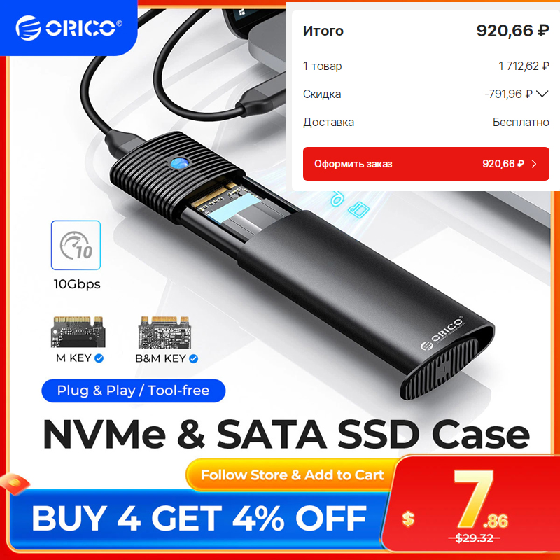 У модели NVMe+SATA в комплекте радиатор и термопрокладка (thermal pad).