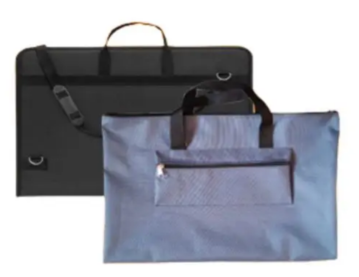 Есть ещё сумки-планшеты для художников, дороже, и более жесткие, вместо старых фанерных.