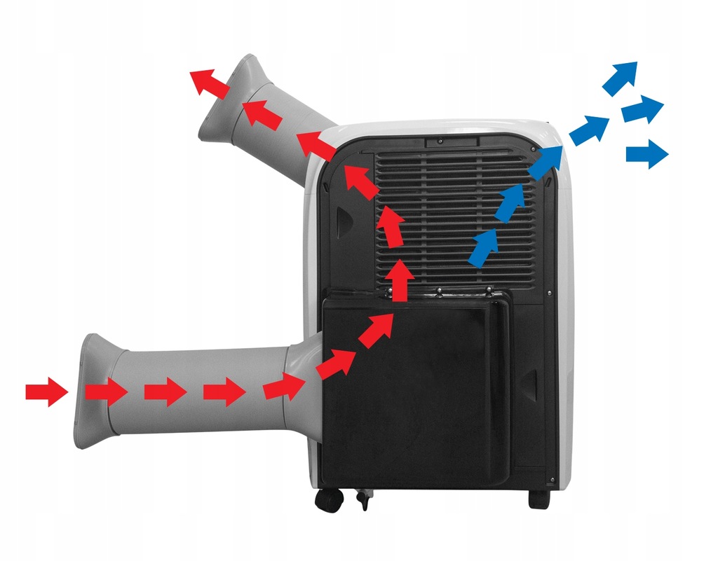Обычно "две трубы" значит, что одну трубу можно подсоединить либо к выходу горячего воздуха (тогда кондиционер размещается в помещении), либо вместо решетки на выход холодного воздуха (тогда кондиционер будет снаружи).