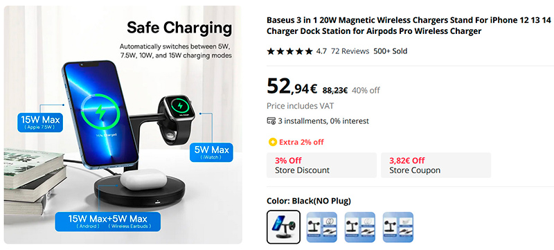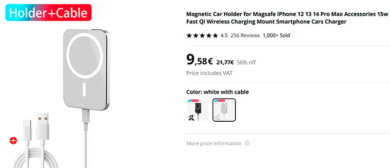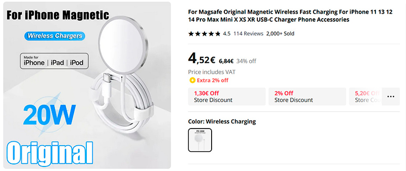 Оригинальная беспроводная зарядка Magsafe стоит €39 без адаптера. Вот неоригинальная.