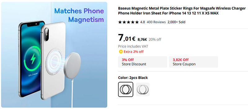 MagSafe - фирменная технология Apple, благодаря которой беспроводная зарядка MagSafe надежно крепится к спинке смартфона. Металлические кольца Baseus (черного и белого цветов) позволяют использовать магнитную зарядку MagSafe и для старых моделей айфонов, и для любого другого смартфона с обычной беспроводной зарядкой: Xiaomi, Huawei, Samsung, OnePlus и так далее. Диаметр металлического кольца 55 мм, толщина - всего 0,4 мм. И с этим кольцом вы сможете использовать и внешний аккумулятор MagSafe (или аналоги), и магнитную подставку-зарядку, и автомобильный крэдл-зарядку. Интересная штука, заказываю себе.