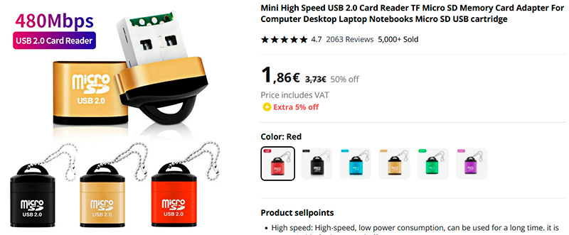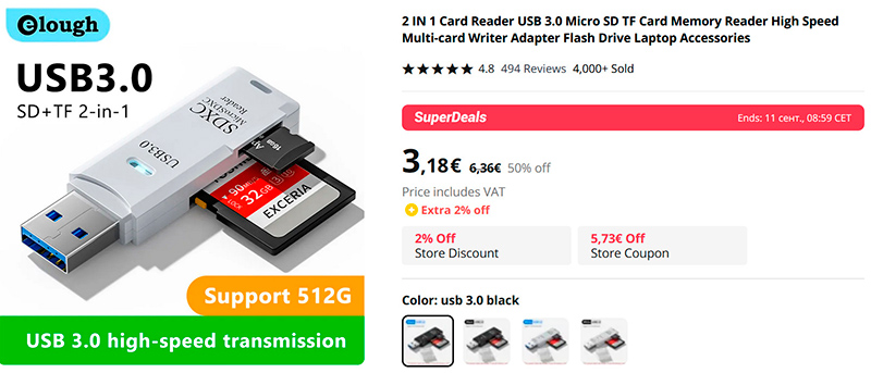 Для тех, кто до сих пор использует фотокамеры с картами памяти SD, актуален переходник под SD и microSD. Есть вот такой миниатюрный и быстрый вариант.