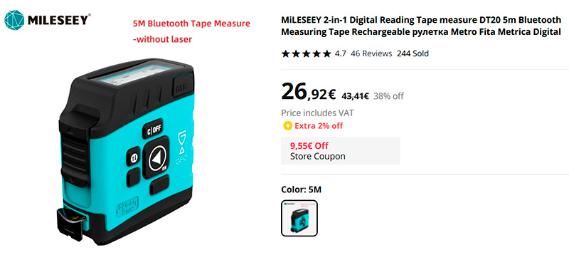 Люблю такие штуки - рулетка с дисплеем, показывающим измеренные данные, которая может по Bluetooth подключаться к смартфону и передавать туда результаты измерений.