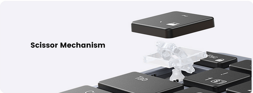 Ножничная или ножнично-мембранная - я ее в руках не держал. Сам UGREEN указывает Scissor Mechanism и на картинке показан именно ножничный механизм. Да и не очень понимаю, как это - ножнично-мембранная? Я встречал либо такие, либо эдакие. У Логитека есть еще типа улучшенные мембранные, с коротким ходом, они удачно маскируются под ножничные, но все-таки мембранные.
