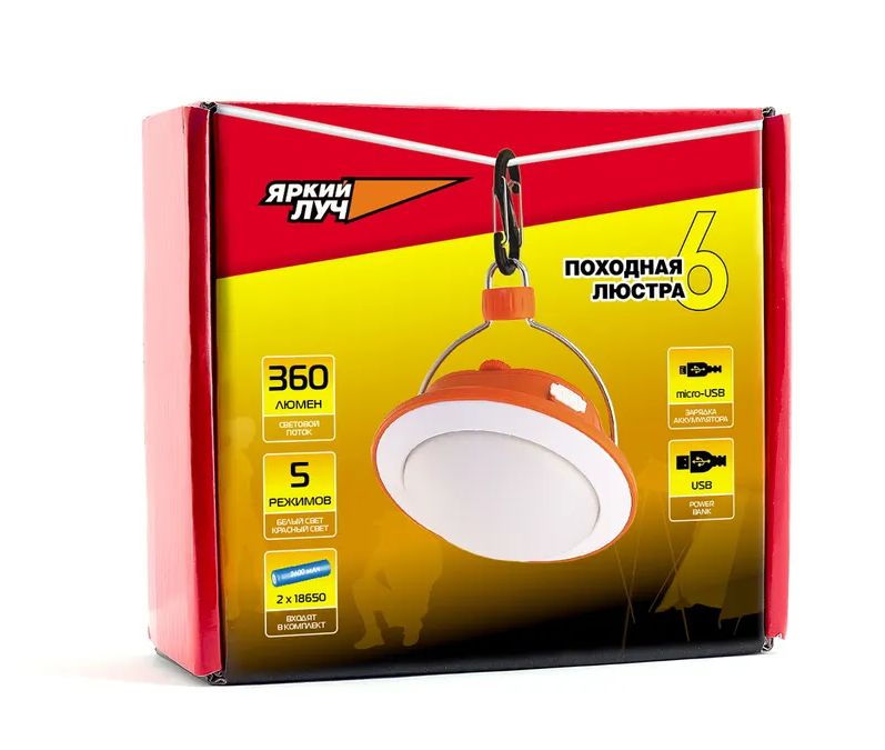 Фонарь ЯРКИЙ ЛУЧ CL-360A "Походная люстра 6" аккум. Li-Ion 5200mAh, 360лм, 5 режимов, зарядка USB, powerbank