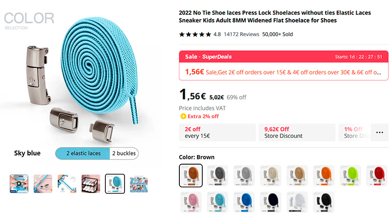 Понадобилось тут мне обновить запас, и я обнаружил вот такой новый интересный вариант с удобной застежкой. Теоретически застежку можно быстро расстегивать и застегивать снова, но с эластичными шнурками обычно такой необходимости нет: один раз застегнул - и все. Главное условие установки - зашнуровывать кроссовок надетым на ногу, при этом сильно не затягивать - силу почти не прикладывать. И всё, после этого кроссовок будет легко надеваться на ногу и сниматься с нее, ходить в кроссовках будет вполне комфортно, и вы навсегда забудете само понятие "у меня развязался шнурок". Данный вариант - удобный, недорогой и тут большой выбор цветов - аж 14 видов.