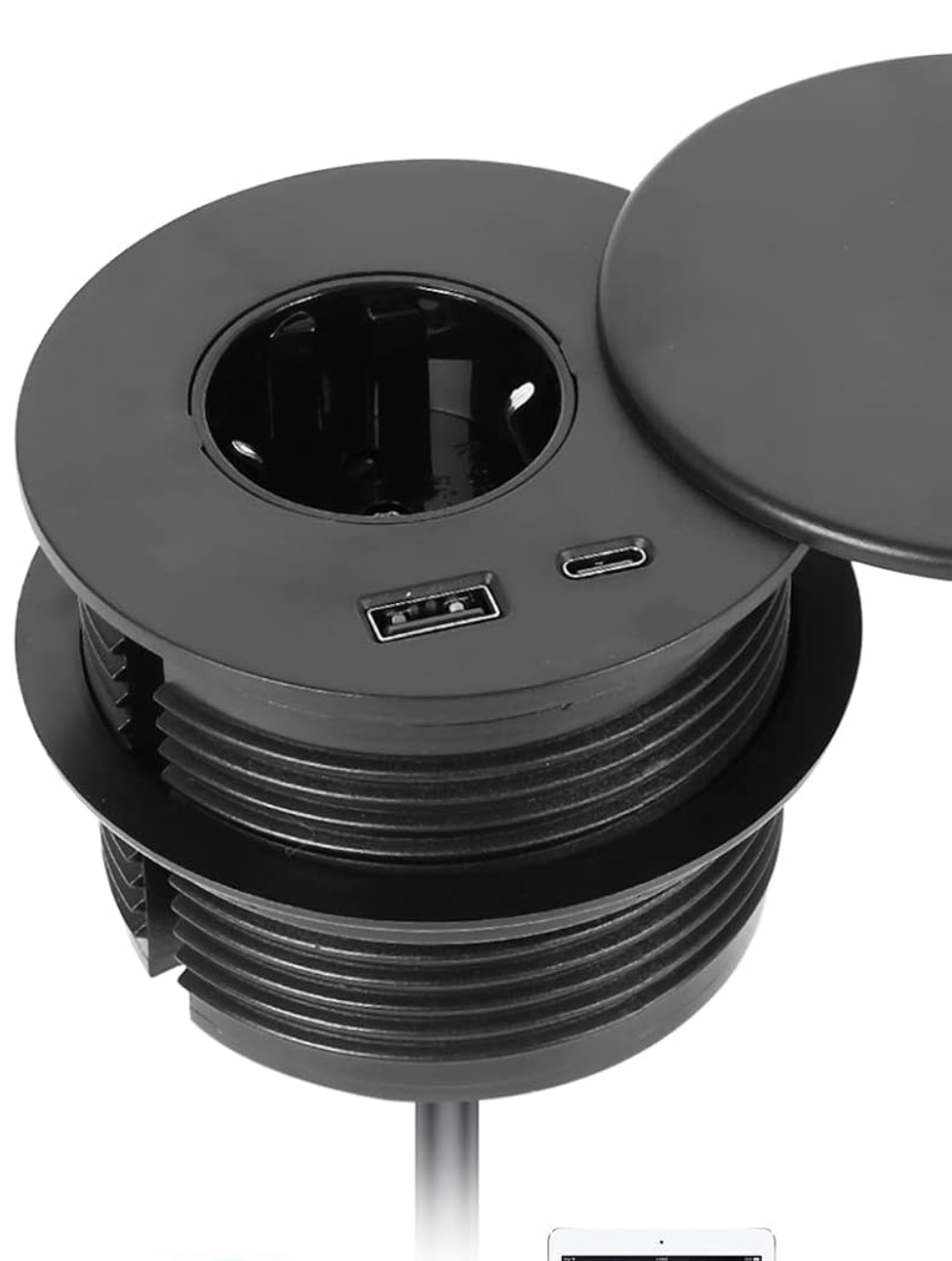 я вот тоже ищу типа такой штуки для монтажа в столешницу, но без питания, а только с несколькими юсб выходами, но так, чтобы от каждого разъема шел свой проводок и лучше бы с поддержкой быстрой зарядки.