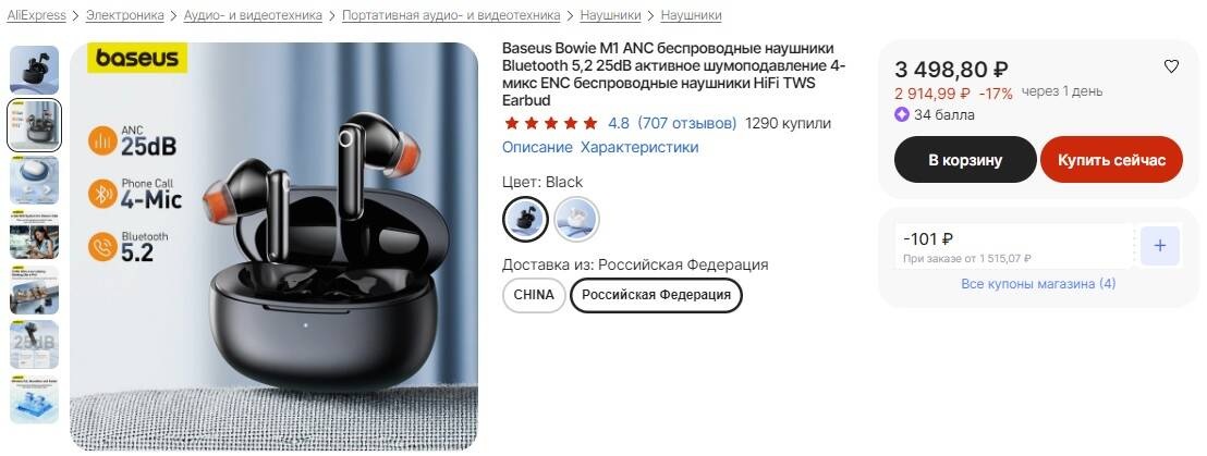 Беспроводные наушники Baseus Bowie M1 на AliExpress с доставкой из РФ за 2085₽