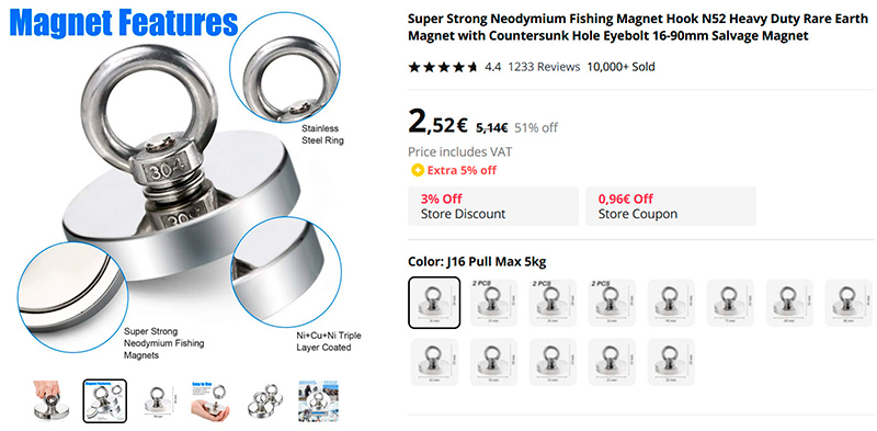 Решил все-таки купить, поискал - вот тут нашел хороший выбор неодимовых магнитов с удобной ручкой и разных размеров: от 16 мм, выдерживающих до 4 кг, до 90 мм, выдерживающих до 350 кг. Нет, 350 мне не надо, а вот какой-нибудь 32-миллиметровый - в самый раз, заказал.