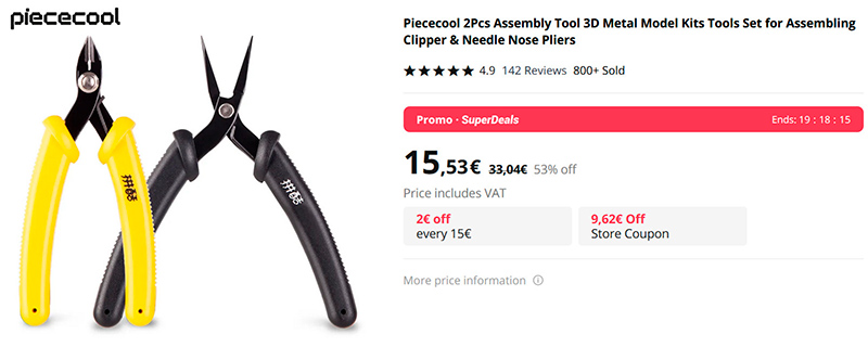 Разработчик предлагает приобрести вот такой их набор инструментов для подобных конструкторов - кусачки и игольчатые плоскогубцы, - но скорее всего, у всех дома такие инструменты найдутся.