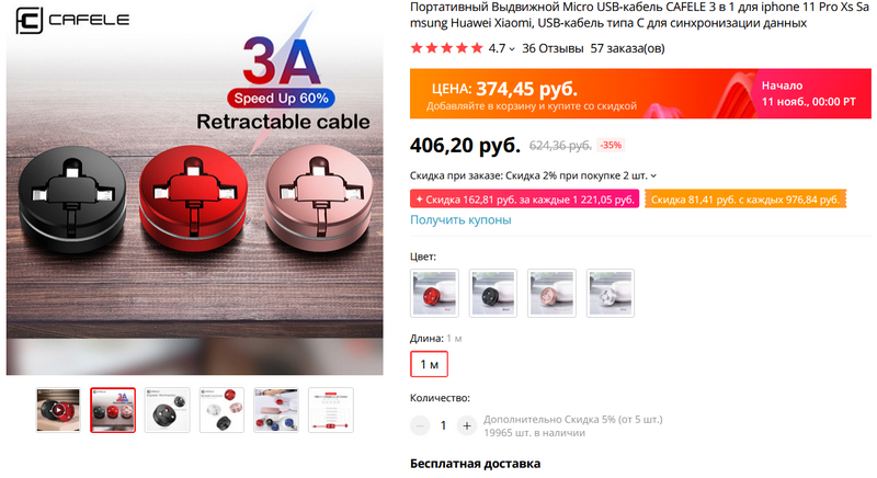 2. Если достаточно зарядки от USB type A (то есть 2А), то кабели Baseus - вполне себе.
