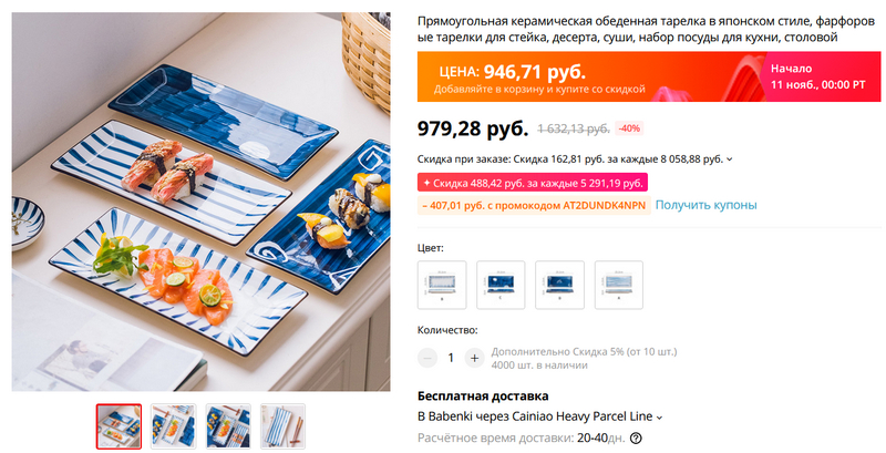 Это из серии моих личных предпочтений - обожаю прямоугольные тарелки в японском стиле. Не для всего, нет, но вот как раз для семги, которую мы покупаем охлажденную и сами солим (предварительно, конечно, для безопасности заморозив в морозилке на несколько дней, а потом медленно разморозив в холодильнике, чтобы вкусовые качества не страдали), такие тарелки подходят лучше всего. У нас такие тарелки - белые, без рисунка, а здесь они повеселее, с различными рисунками. Также на такие тарелки очень удобно выкладывать для гостей сыры, колбасы и так далее. Синие особенно понравились, заказал.