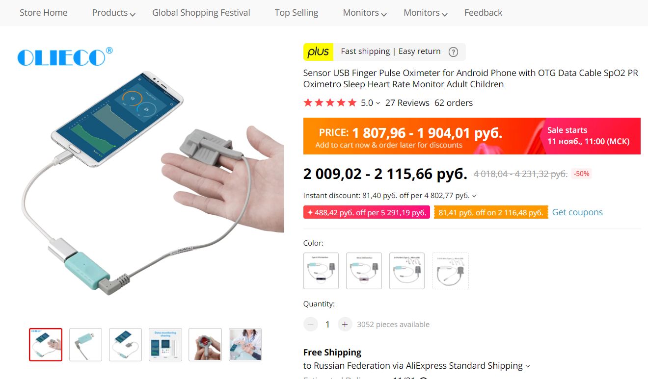 Еще одна популярная в нынешних условиях тема - пульсоксиметры, которые сейчас действительно необходимо иметь в каждом доме. Разговаривал с родственницей, живущей в Обнинске. Она рассказала, что у них в городе пульсоксиметры пропали как класс: раньше это не было бытовым устройством, их использовали только в больницах, поэтому те, что были, - все смели и теперь пусто. У китайцев, конечно, этих устройств - полно. Я в каком-то из прошлых выпусков давал ссылку на самые обычные пульсоксиметры стоимостью от 900 рублей, а тут мне самому посоветовали пульсоксиметр нового типа аж с цветным AMOLED-дисплеем, и он при этом еще и в два раза дешевле. Как они этого добились - я не знаю, но советовавший, который это устройство купил, говорит, что работает отлично. Впрочем, пульсоксиметры, при всей своей нужности при коронавирусе, устройства достаточно простые. Я себе заказал, потому что мой, купленный на Amazon, мне совсем не нравится.