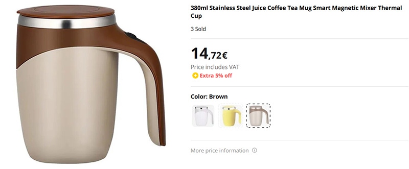 Удобная термокружка на 380 мл, хорошо сохраняющая тепло. Из интересного - она снабжена механизмом перемешивания содержимого, который включается кнопкой на ручке.