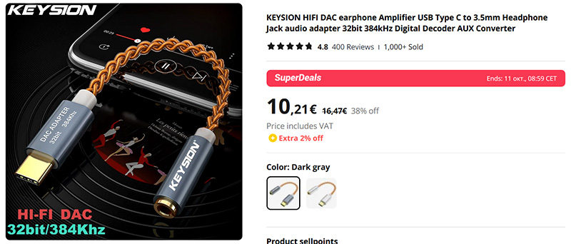 Если вы хотите, чтобы звук в наушниках имел хорошее качество и достаточный для эффекта погружения уровень громкости, то для этого имеет смысл приобрести не просто переходник, а переходник со встроенными ЦАП-усилителем. Понятно, что особых чудес от такой крошки можно не ждать, но качество и уровень звука он действительно улучшает.