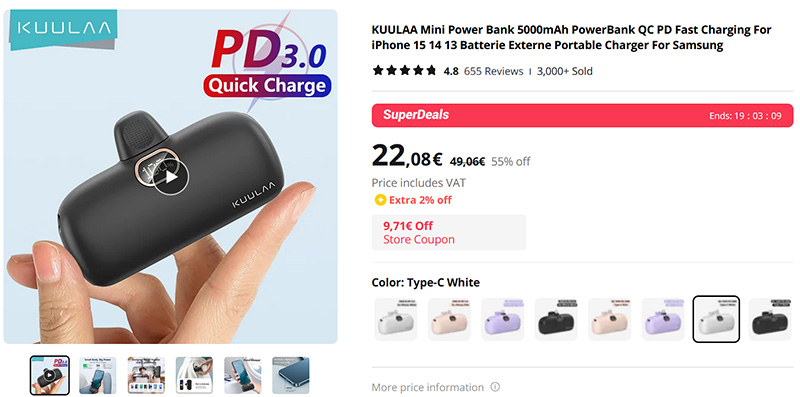 Всегда актуальные мини-аккумуляторы для быстрой подзарядки смартфона в дороге. Емкость 5000 мАч, разные варианты цветов, поддержка QC на 18 Вт и PD на 20 Вт, под порты Lightning и Type-C, не требуют кабеля, имеют дисплей, на котором показывается уровень заряда.
