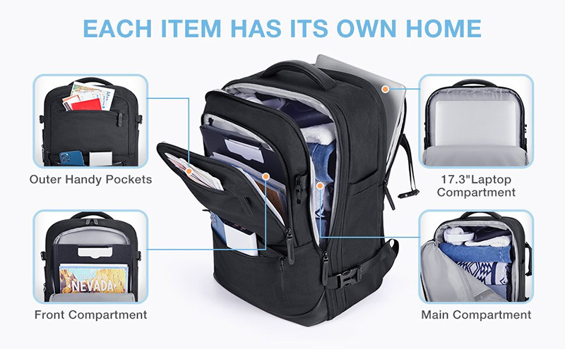 Продвинутый рюкзак с большим количеством отделений. Выполнен из водостойкого полиэстера, размер соответствует требованиям к ручной клади большинства авиакомпаний. Объем рюкзака - 25 литров, причем он расширяется до 40 литров. В него помещается ноутбук до 17,3" и планшет до 14". Есть специальные конфигурируемые перемычки, позволяющие удобно разместить в нем различные вещи. Есть боковые карманы для воды/зонта, ремень для крепления к чемодану.