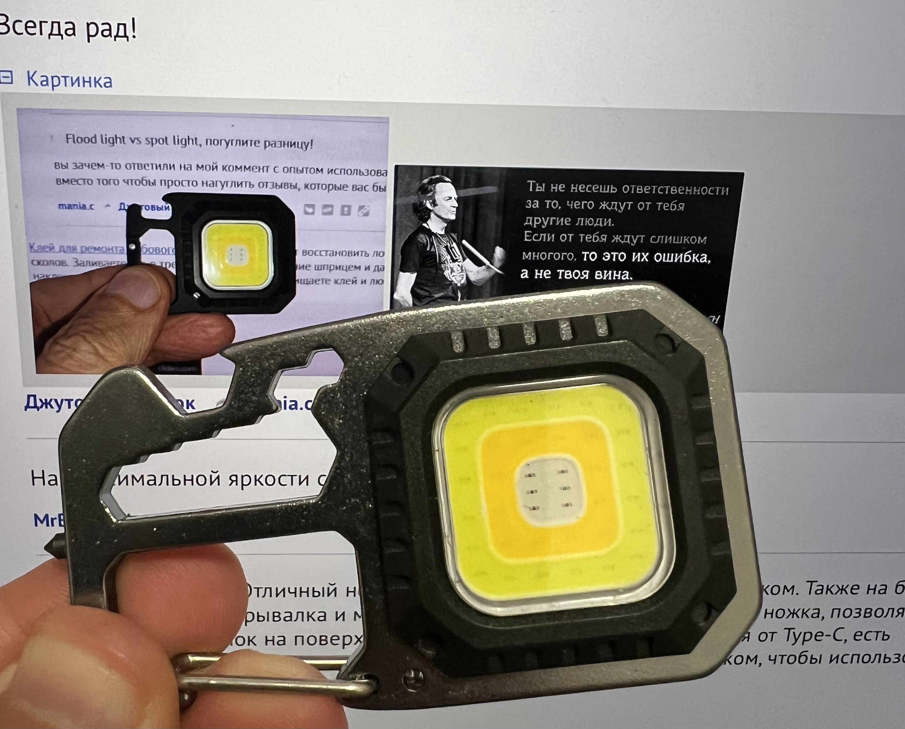Отличный небольшой брелок с нормальным фонариком. Также на брелоке есть карабин, открывалка и магнит. Сзади на фонарике откидывается ножка, позволяющая установить брелок на поверхности в нужном положении. Заряжается от Туре-С, есть индикатор заряда. Также можно приобрести в наборе с наголовником, чтобы использовать в качестве налобного фонарика.