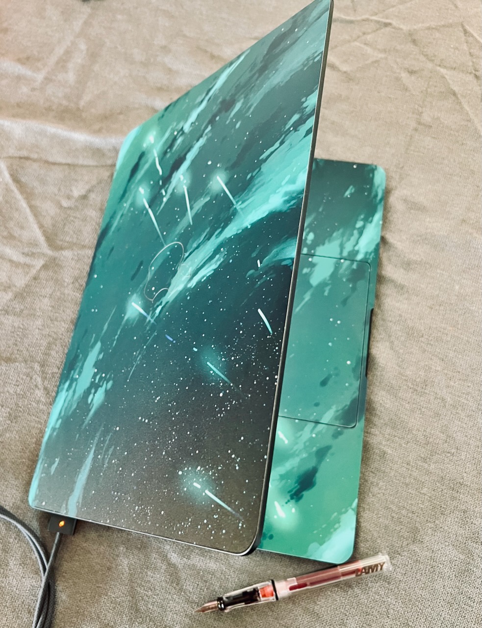 Это тонкий винил, он очень легко клеится и прекрасно выглядит. И, главное, не видны отпечатки пальцев. Это основная причина, почему я его клею на тёмные маки – светлые и так норм. Клеить ли внутренние части вопрос личных предпочтений, но, на удивление, тачпад с винилом отличается от тачпада без винила в, по моему мнению, лучшую сторону. Прикольная текстура.