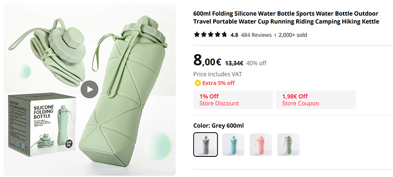 Чем плохи обычные бутылки для воды? Воду выпил, а пустая бутылка занимает место. Вот хорошее решение этой мелкой проблемки - складная силиконовая бутылка для воды емкостью 600 мл. Воду выпили, бутылку смяли в блинчик - и в сумку. А плотная завинчивающаяся крышка не даст каплям пролиться.