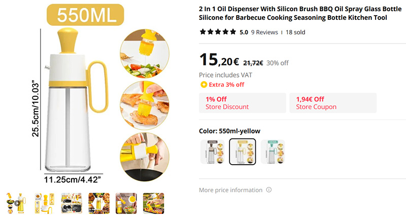 Удобная силиконовая масленка для оливкового или подсолнечного масла "2 в 1": у нее и горлышко с тонкой струйкой, и кисточка для смазывания.