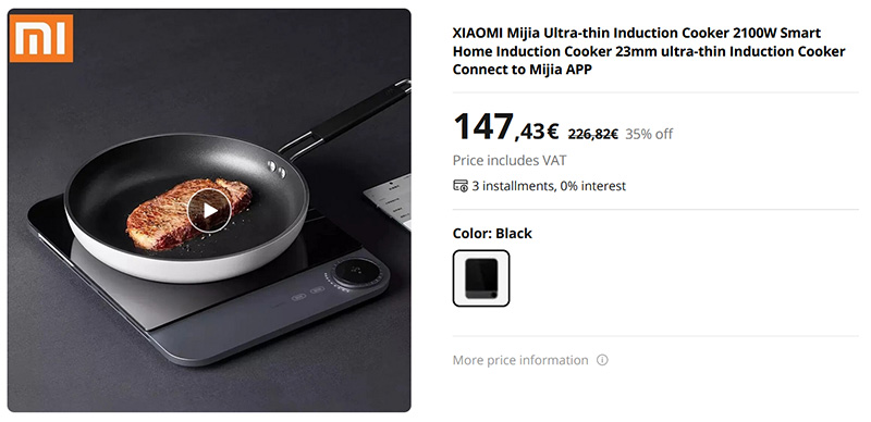 Ультратонкая индукционная плитка Xiaomi Mijia мощностью 2100 Вт. Толщина - 23 мм. Штука очень полезная далеко не только для дач и так далее. Ее можно использовать дома, когда, например, все конфорки плиты заняты, а эту плитку можно поставить в любое место и на ней что-нибудь приготовить.