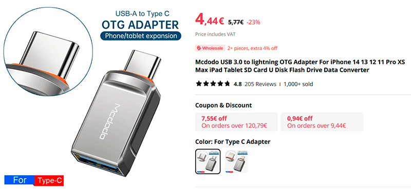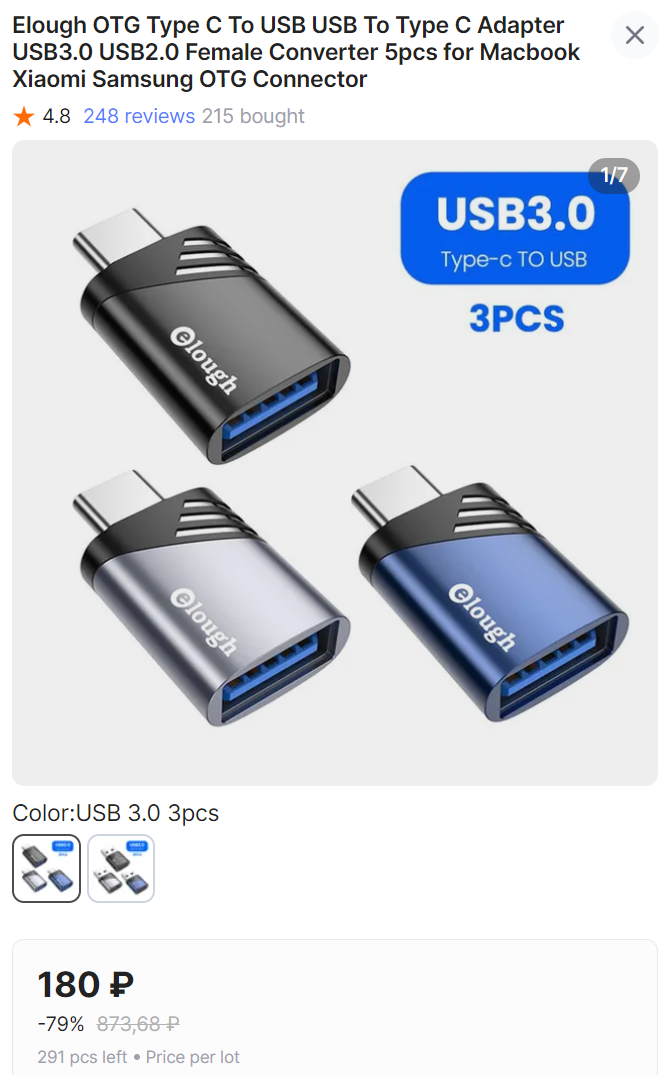 OTG-адаптер под Type-C или Lightning для подключения к смартфону/планшету (iPhone/iPad) внешних накопителей через USB-A.
