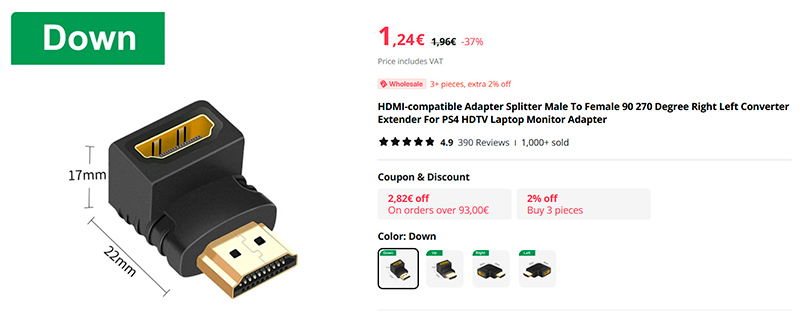 Нередко бывает так, что телевизор висит близко к стене, и если у него порт HDMI находится не на боковой, а на задней поверхности, то туда очень неудобно втыкать кабель. Для таких случаев есть переходники различных видов, с помощью которых кабель HDMI можно будет легко подключить и не мучиться.
