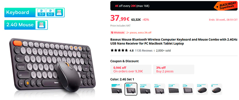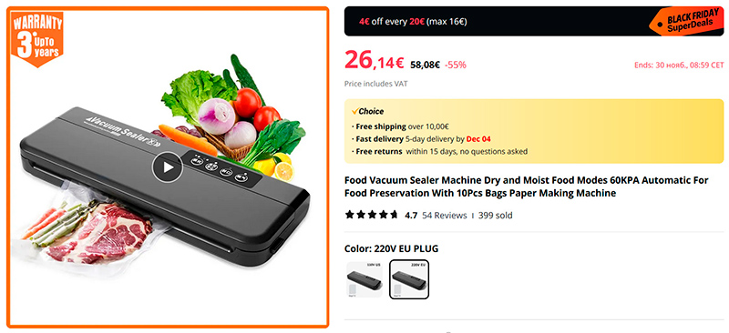 Распродажа "Черная пятница" на Aliexpress проводится весьма активно, она вовсю идет и продлится до 29 ноября.