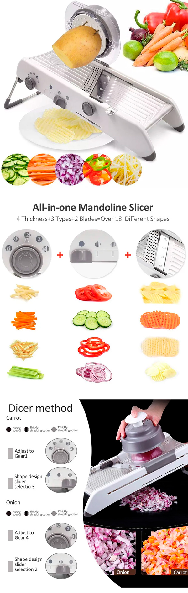 Регулируемая тёрка с кучей вариантов нарезки.