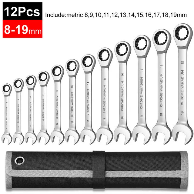 8-22 (ключи на 8, 10, 11, 12, 13, 14, 15, 16, 17, 18, 19, 22мм ) и 8-19 (ключи на 8, 9, 10, 11, 12, 13, 14, 15, 16, 17, 18, 19 мм). Есть так же и наборы с меньшим количеством ключей.