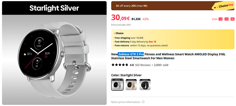 Приближается время всяких подарков, и вот очень неплохой и совсем недорогой вариант - умные часы Zeblaze GTR 3 Pro. Я именно эту модель не тестировал, но совсем недавно тестировал Zeblaze Ares 3 Pro той же ценовой категории, и мне они очень понравились: учитывая такую дешевизну, я думал, что часы будут просто отстойные, но они оказались вполне приличными. А GTR 3 Pro от них отличается, судя по всему, только дизайном - он тут сделан под Amazfit GTR 3, которые почти в четыре раза дороже.