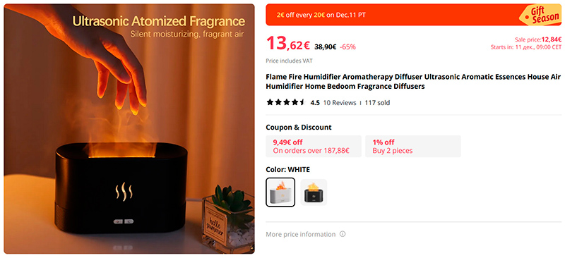 "Увлажнитель воздуха с эффектом пламени - совершенно не увлажняет, но служит элементом интерьера. "