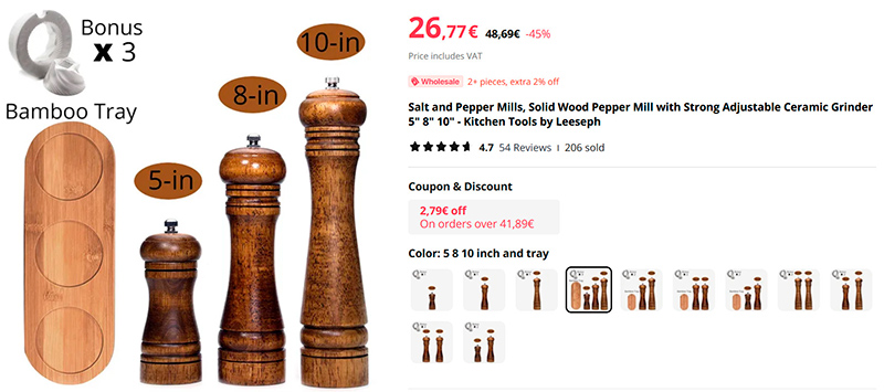 Симпатичные деревянные мельнички для специй трех разных размеров. Есть варианты комплектации с подставкой. Ножи у мельничек - керамические. К любым комплектам идут запасные ножи.