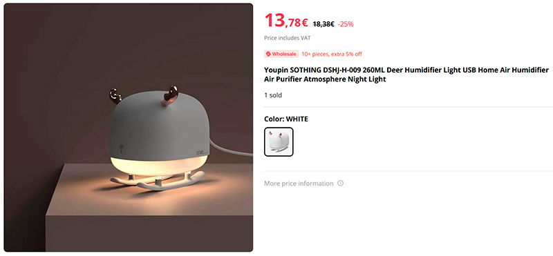Забавный ночничок, который одновременно является увлажнителем для воздуха. Емкость для воды - 260 мл.