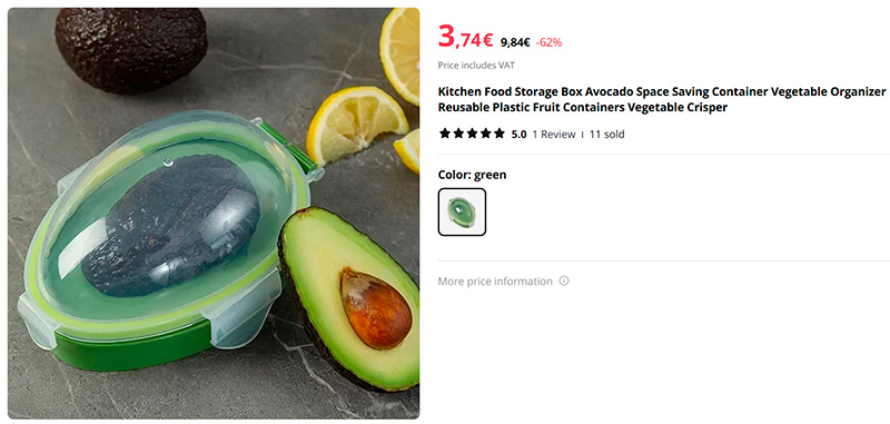 Способ первый - использовать вот такой контейнер. Половинка авокадо кладется косточкой вниз в контейнер, который закрывается крышкой. В комментариях написали, что половинка сохраняется хорошо. Однако, на мой взгляд, это не универсальный способ. В наших краях авокадо бывают как мелкие, так и довольно крупные. Крупный плод в такой контейнер может просто не влезть.