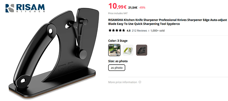 Хвалят вот эту точилку для ножей RISAMSHA Kitchen Knife Sharpener Professional. Она продается в фирменном магазине Risam Kitchen, более 1000 продано, средняя оценка покупателей - 4,8. Выглядит интересно, к тому же снабжена удобной ручкой.