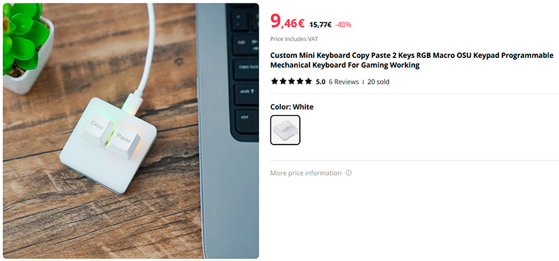 Забавная какая штука - две клавиши Copy и Paste. Подключаются по USB, драйверов не требуют (стандарт HID) - просто каждая клавиша генерирует свою команду. При необходимости эти клавиши можно программировать на самые разнообразные действия (есть специальная программа-программатор для клавиатур такого типа): например, можно запрограммировать на какую-то из этих клавиш ввод длинного пароля.