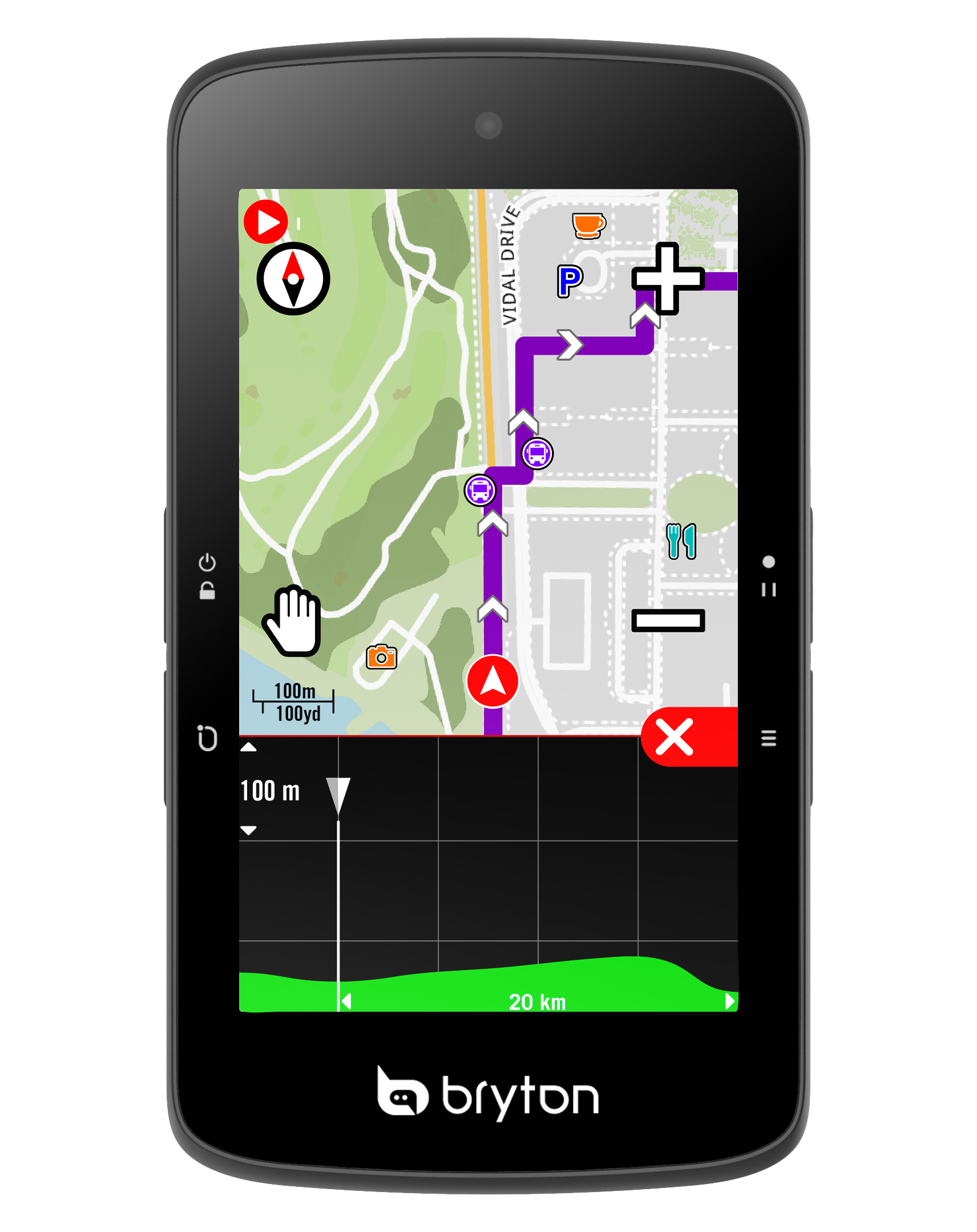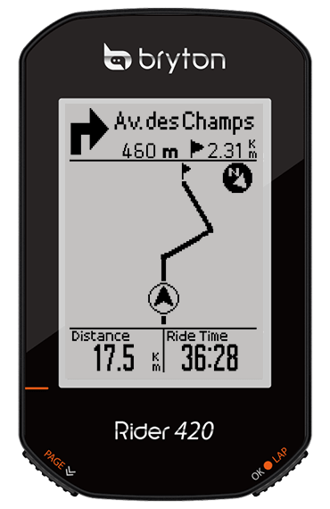 У велокомпьютера навигация по другому принципу строится - рисуется (или загружается, или генерируется из предыдущей покатухи) трек, и мы по нему едем.