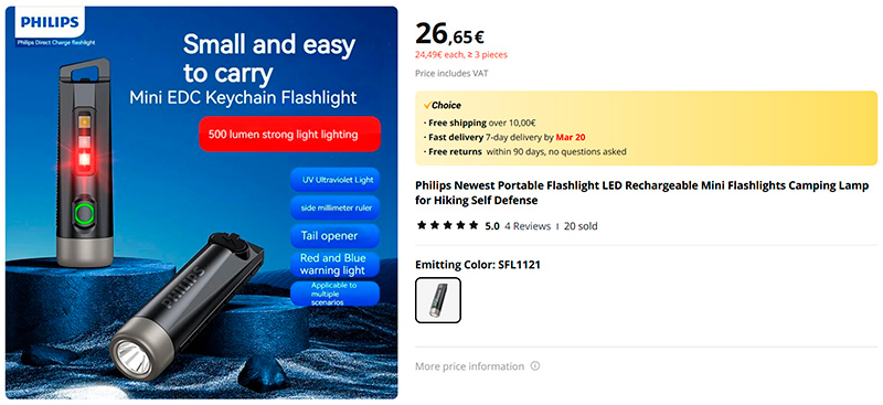 За ту же самую цену я недавно по здешнему совету заказал (но еще не получил) маленький фонарик NITECORE TINI2