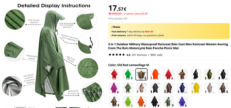 Как раз к весне и приближающемуся лету - удобные дождевики с капюшоном, которые укладываются в маленький чехол. И там еще 24 варианта расцветок - на любые вкусы.