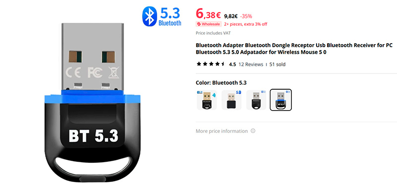 Кстати, о подключениях по Bluetooth. У вашего ПК нет Bluetooth, а хочется к нему подключать беспроводную клавиатуру и мышь, беспроводные наушники и так далее? Просто купите вот такой адаптер Bluetooth - и все проблемы будут решены. Там на выбор - несколько версий, но лучше брать самую последнюю - с поддержкой Bluetooth 5.3.
