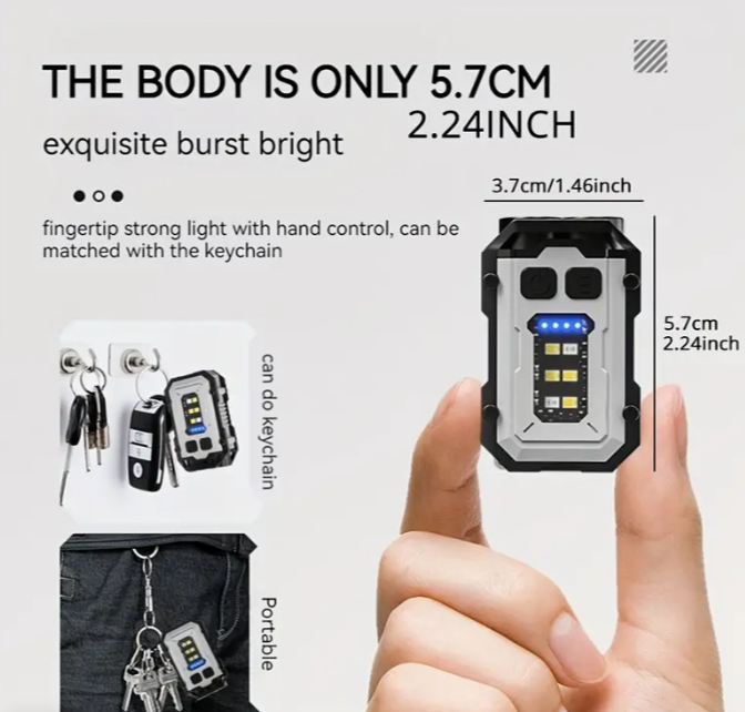 Ну, кстати, прям реально полезная штука (я фанат полезных вещей, которые можно носить с ключами в качестве брелоков) - светодиодный фонарик размером с флешку, который можно носить с ключами! Весит 17 граммов, бьет на 100 метров и выдает 500 люмен. Заряжается через порт Type-C. Имеет  цветовую индикацию заряда и три дополнительных светодиода: ультрафиолет, красный и синий.