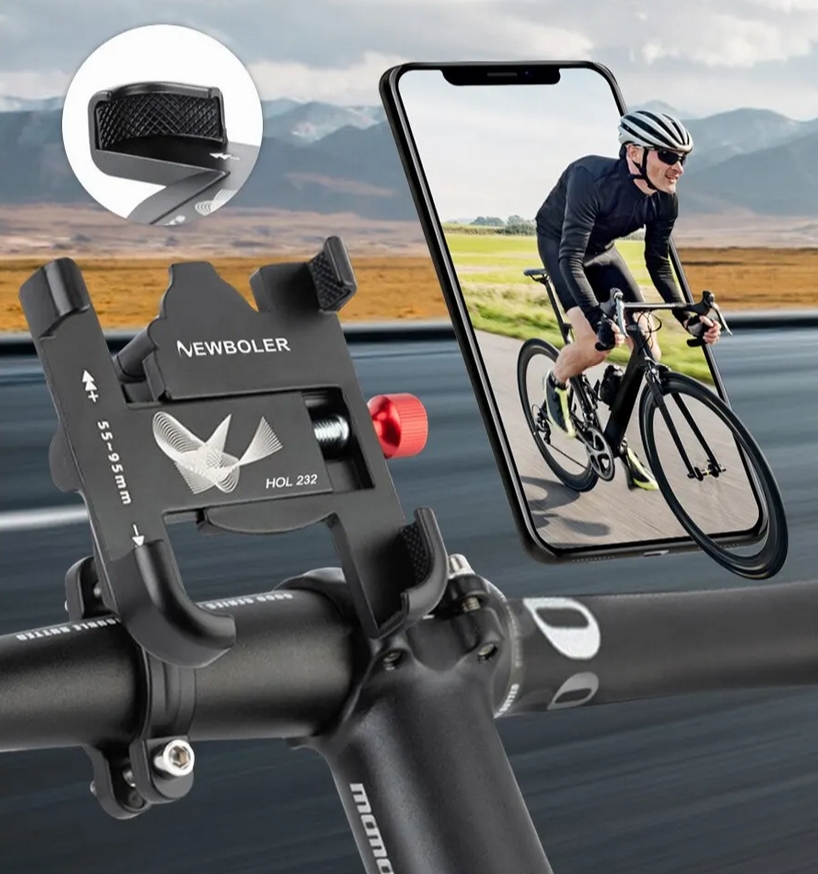 Наткнулся на стильный металлический велосипедный держатель. Пишут, что подходит почти под все типы современных телефонов.