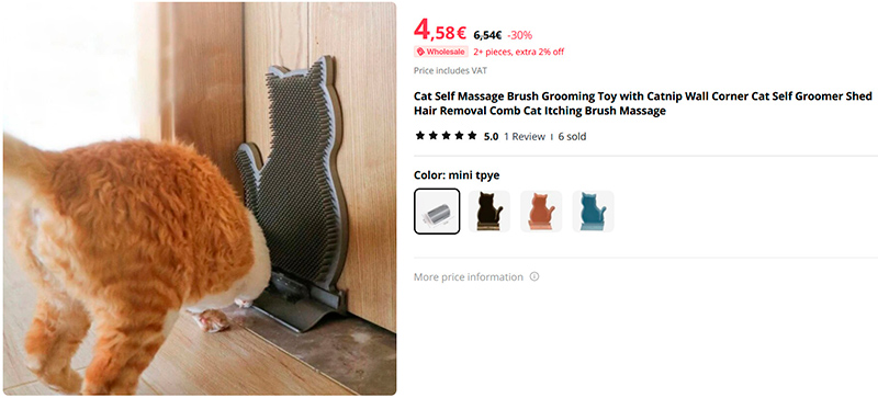 Саморасчесывалка для кошакейцев. Устанавливается на идущую в комплекте подставку, в подставке есть отделение с отверстиями в крышке для того, чтобы туда положить что-нибудь привлекающее кошек, типа кошачьей мяты, затем подставка подсовывается под дверь для устойчивости, после чего кошка приходит и трется об эту расческу.