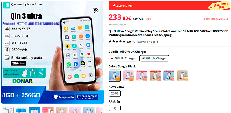 Вышло новое поколение смартфона Qin - он называется Qin 3 Ultra. Очень компактный, всего пять дюймов, при этом вполне полноценный андроидный смартфон с нормальными характеристиками: MTK G99, 8/256 ГБ, аккумулятор 2500 мАч. Я для теста покупал Qin 2 Pro - он мне понравился, хотя обзор написать я почему-то так и не сподобился. Но 2 Pro был прям совсем маленький, а этот все-таки побольше: 12.68 x 6.18 x 0.87 см.