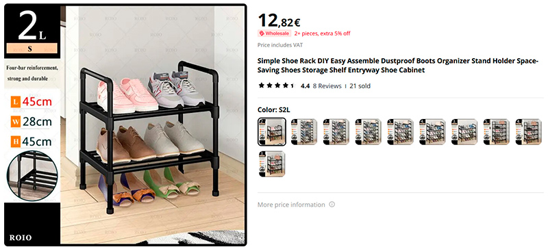 Большой выбор легко и быстро собираемых открытых полок для обуви (и не только для обуви): от 2 до 8 отделений, различной ширины.