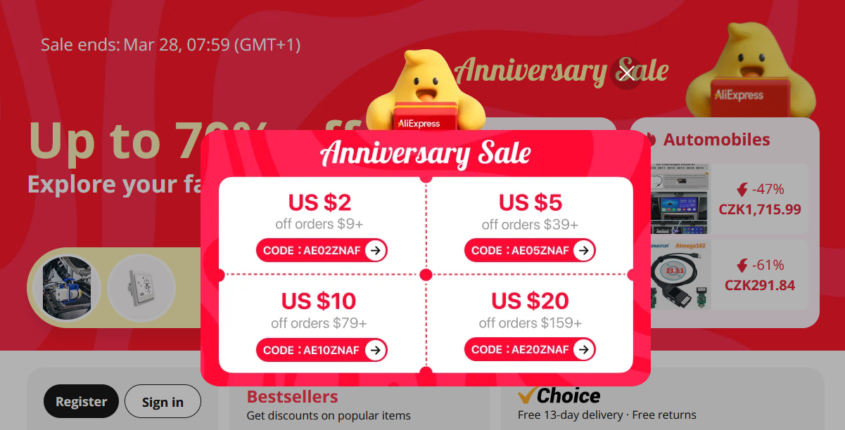 Добавлю список промокодов AliExpress для разных стран (США, Испания, Франция, Польша). Действуют до 27 марта.