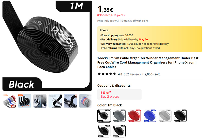 Стоит лишь отметить, что способность липучек застёгиваться-расстёгиваться небеспредельная и на полусотне расстёгиваний липучка изнашивается. Поэтому для хранения кабелей зарядки, удлинителей, фиксации всяких периферийных проводочков они отлично подходят, а когда я пробовал повседневную продуктовую сумку в свернутом виде этой ленточкой фиксировать, то через несколько недель она уже никак не держалась. То есть, не для этого они.
